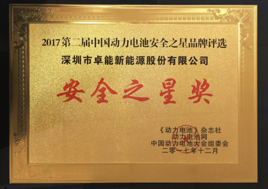 卓能新能源获“安全之星奖”