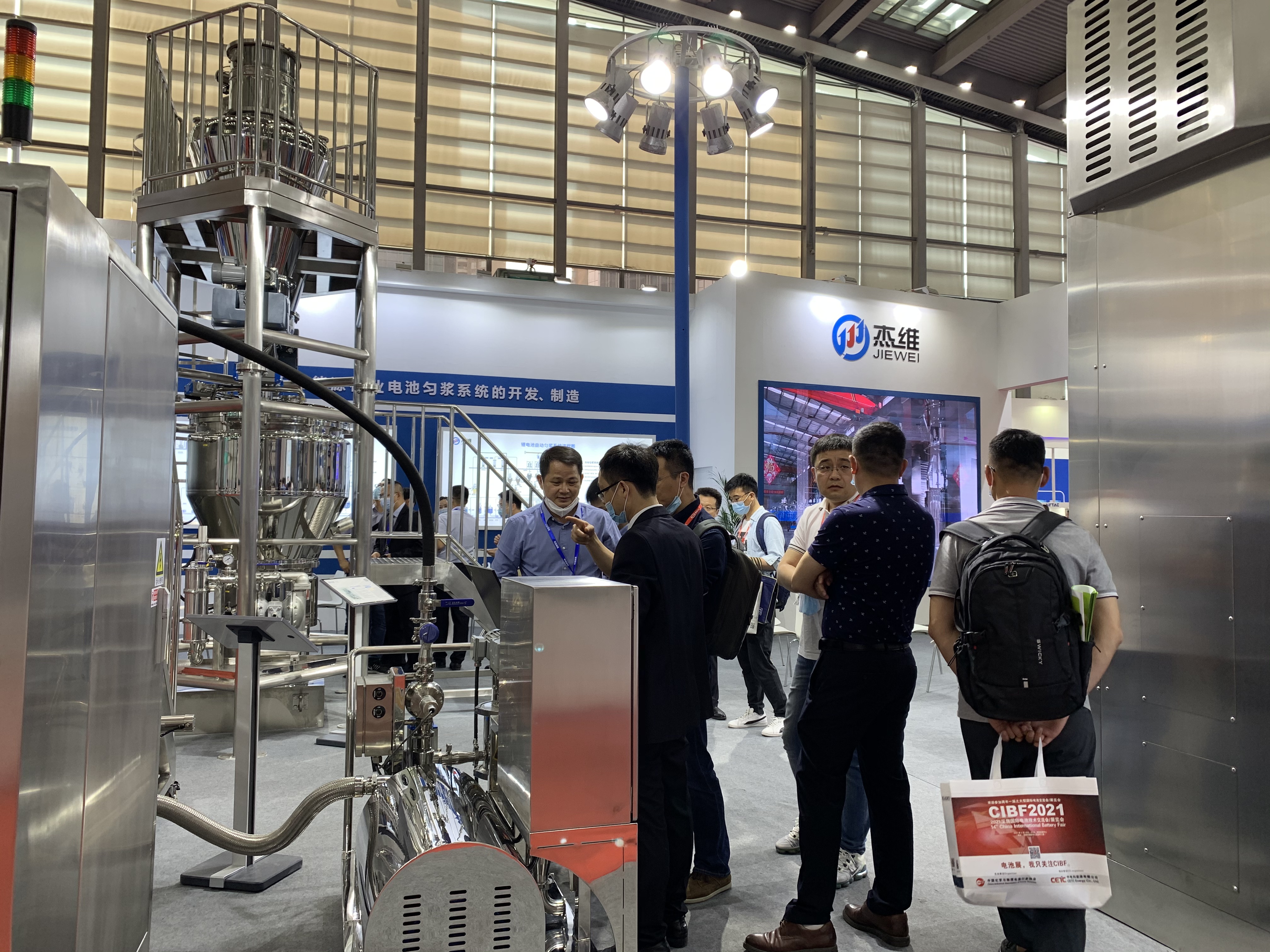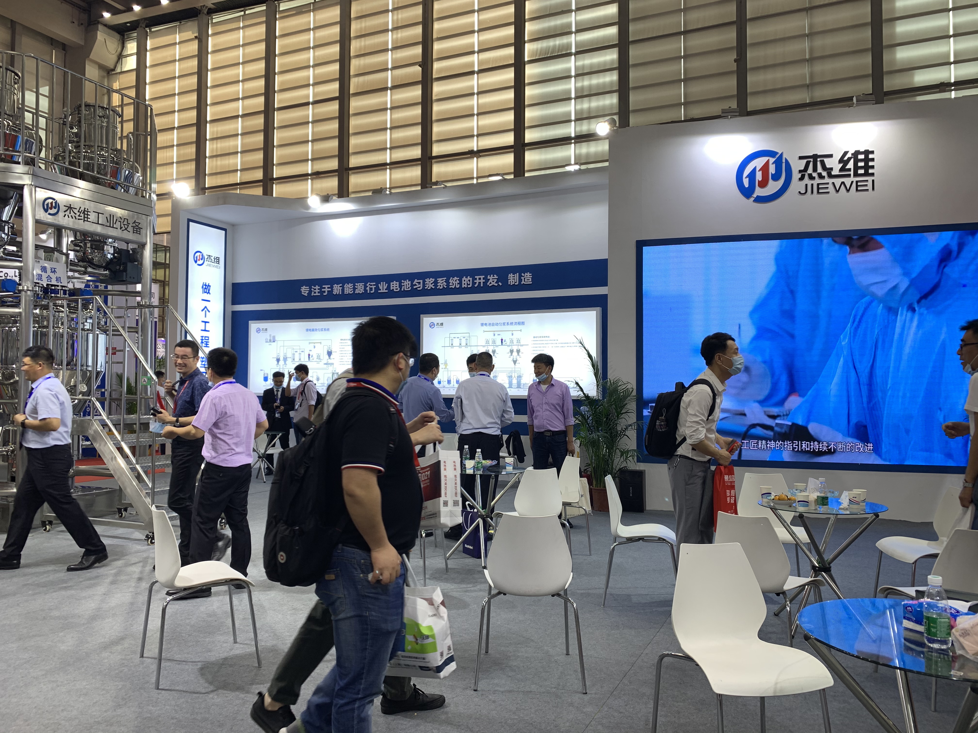 此次展会,杰维携创新产品锂电高效涡轮匀浆机亮相,吸引了不少观众前来围观。